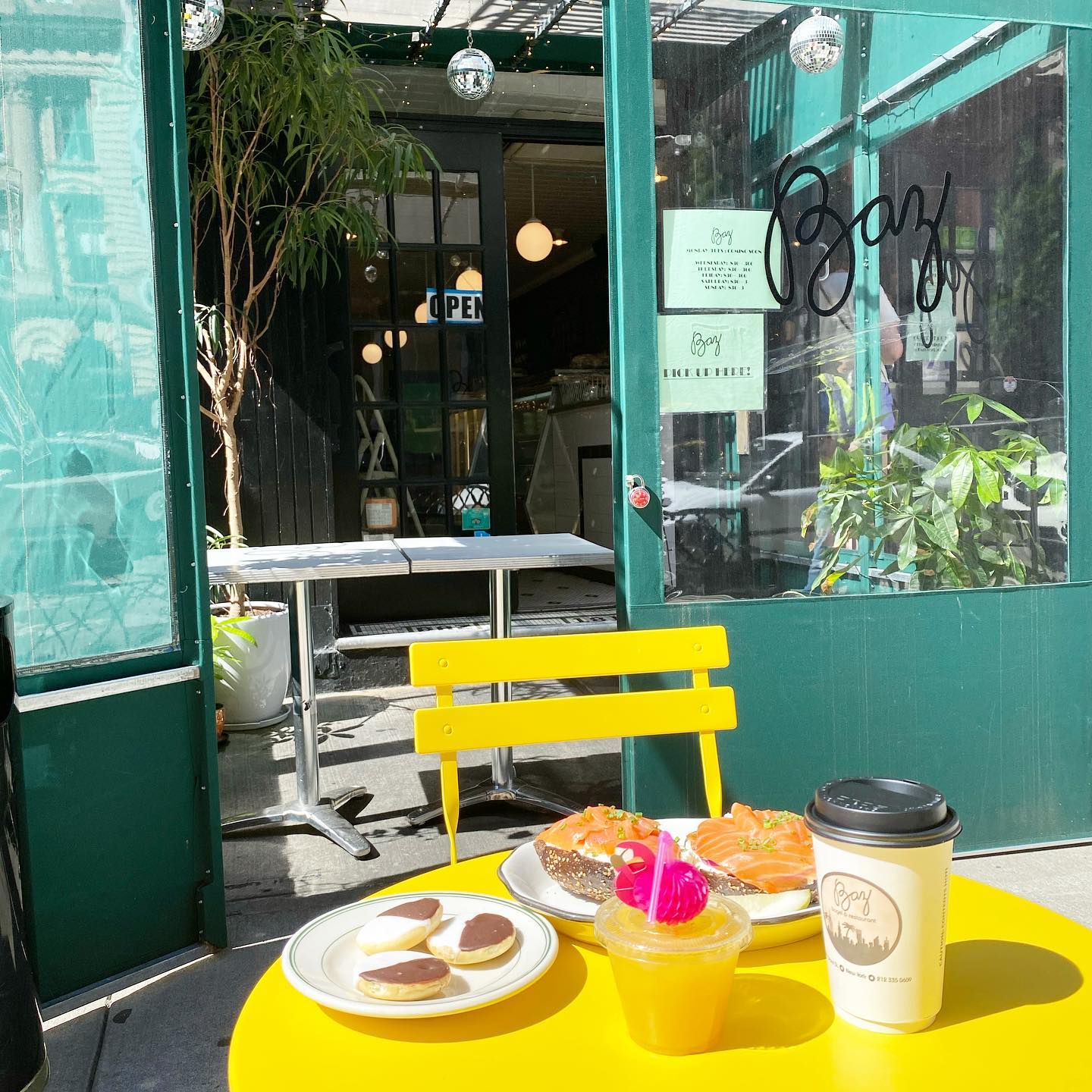 Pro tip: If it’s your first time, you’ve got to order The Baz – an open faced bagel sandwich with nova salmon, scallion cream cheese, tomato, and onion.