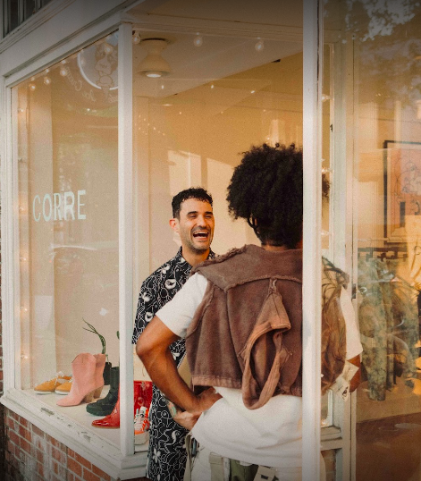 Whether you stop in to marvel at the shoes, chat with the team, or have a glass of wine, Corre is a gathering space for everyone.